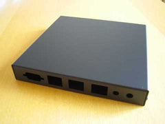Enclosure designed for WRAP.1C / WRAP.1D / WRAP.1E boards. Cutouts for 3 LEDs and 1 switch in front, cutouts for DB9, 2 or 3 LAN, 2 or 1 SMA, DC jack in back. Enclosure made of anodized aluminum.